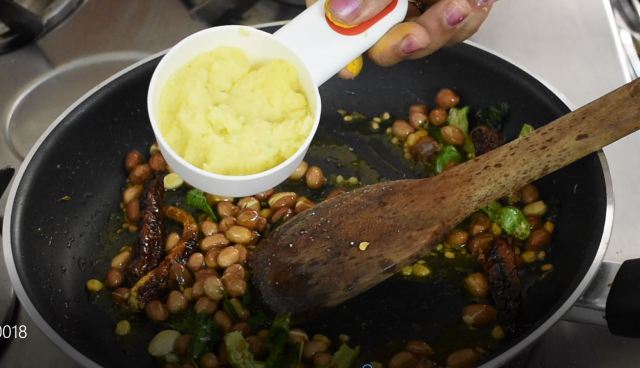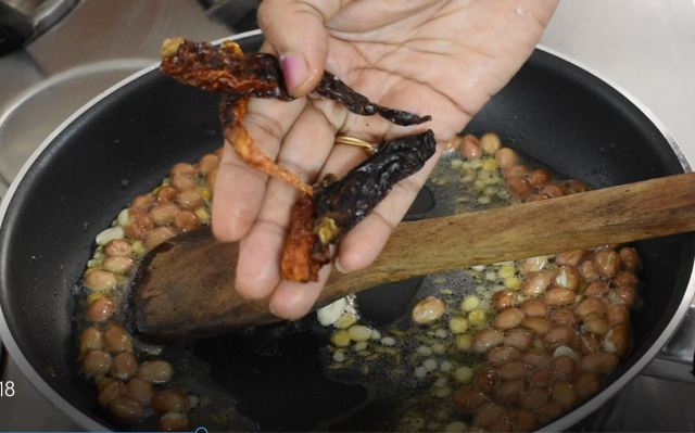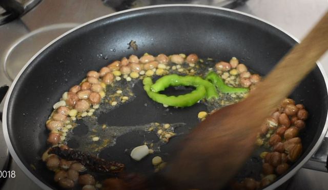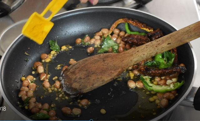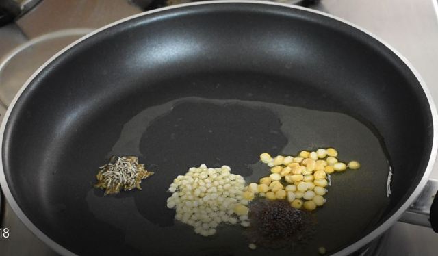 Add oil into a pan. When oil gets heated up, Add mustard seeds, urad dal, channa dal, groundnut seeds and jeera, Saute for a couple of mins,