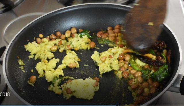 Add both red chillies and slit green chillies and mix well,
