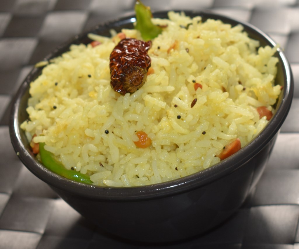 Mango rice is also called Puliyodarai, Puliyogare or Pulihora. This is mainly a south Indian dish where “Puli” means sour in most of south Indian languages. Mango can also be replaced with lemon juice or tamarind juice. This is usually served as prasad (a devotional offering made to a god, typically consisting of food that is later shared among devotees) in most of the south Indian temples. This dish is very easy to prepare and can be prepared in 25 minutes. This dish by itself is a complete food hence don’t need any side dish. I prefer this dish when I am travelling because I don’t have to take other dishes like if I take roti, I would also have to pack sabzi or if I take rice I must pack curry, curd etc hence this dish makes perfect lunch box item. We can even prepare the tempering and store them in the fridge, then when we need to prepare just heat the tempering and add cook rice. If we have both cooked rice and tempered sauce ready then we can prepare this dish in couple of mins.